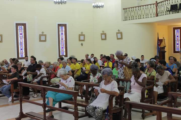 Damos gracias a Dios y a cada uno de los que pudieron llegar la tarde del pasado domingo 1ro de octubre (cerca de 80 persona) provenientes de distintas comunidades de la arquidiócesis de la Habana y de la vecina Diócesis de Matanzas. Gracias a los sacerdotes, religiosos y religiosas que también nos acompañaron. También a mons. Eloy Ricardo (obispo auxiliar de la Habana) que quiso celebrar con nosotros su primer aniversario de consagración episcopal.